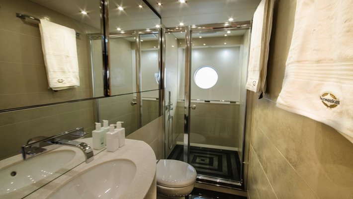 Below deck, the stateroom and guest cabins are intimate and secluded. She can sleep 8 guest in 4 double cabins. One Master, 1 VIP and 2 twin all with ensuite bathroom, air conditioning and TV.