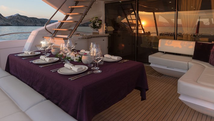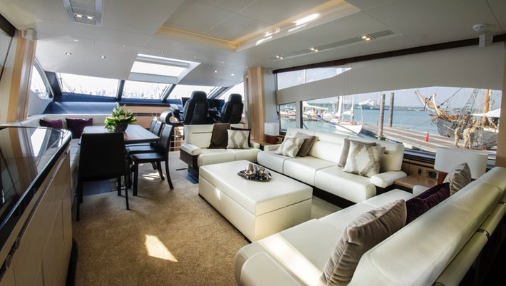 Beautiful and powerful yacht with hydraulic stabilizers for a more comfortable navigation when reaching up to 44 knots.