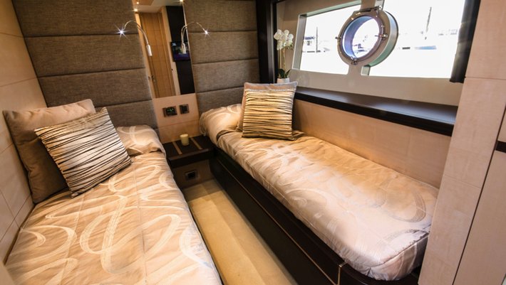 Pace. Style. Agility. It’s there for all to see, especially when speeding along the coastline at an impressive 44 knots. Accommodating up to eight guests, this stalker of the seas delivers exclusivity and practicality in equal measure. The main saloon is light and open thanks to large hullside windows and full height sliding doors that lead to the aft cockpit. And it’s here where you can dine in the open air or spread out and enjoy relaxing in the sun.