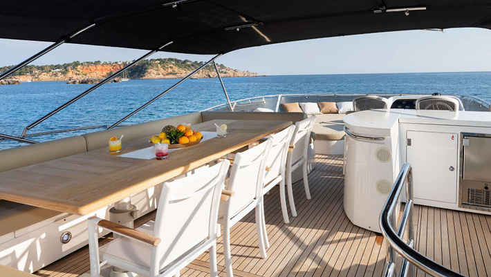 Impecable embarcación, con todo renovado, y las mejores comodidades a bordo. Cuenta con generador, A/A, TV, equipo de musica, auxiliar para deportes náuticos, amplio flybridge, ... Tiene 3 personas de tripulación (Capitán, cocinera y marinero). El amarre en Ibiza está incluido.
