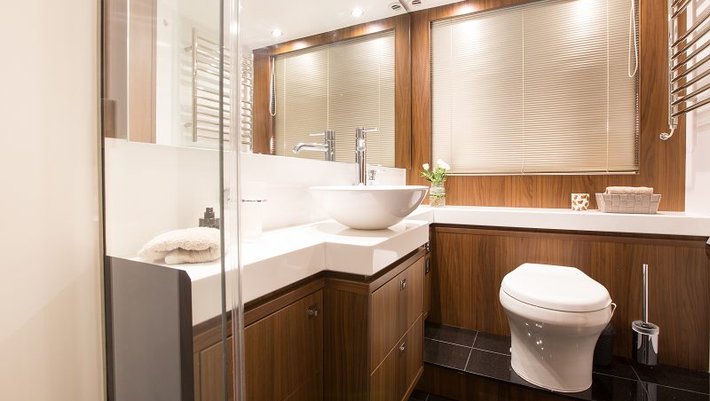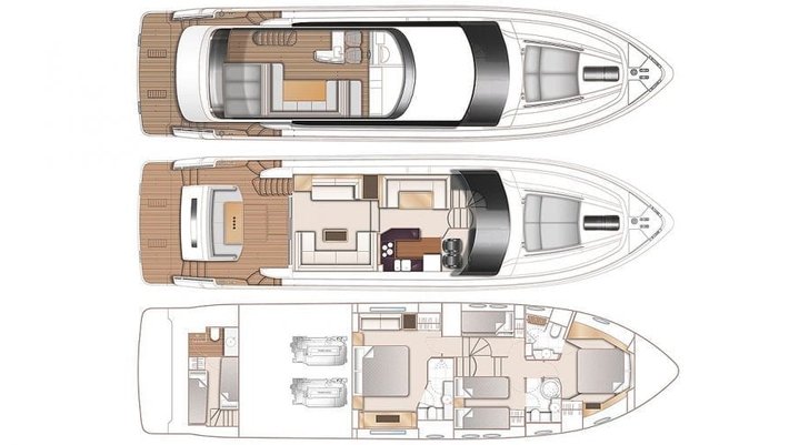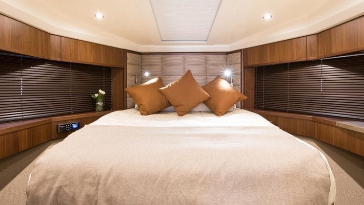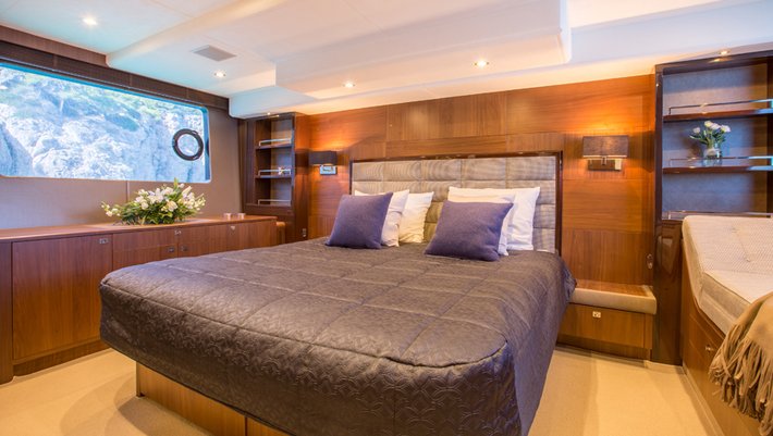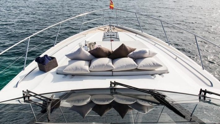 Moderno y elegante yate, con 2 excelentes tripulantes a bordo (Capitán y Marinera/cocinera). Tiene plataforma de baño, tender Williams 90 hp para actividades acuáticas, amplio flybridge con toldo y BBQ, solarium en proa, y mesa para comer en popa. Los interiores están muy cuidados, y la habitabilidad exterior es muy buena.