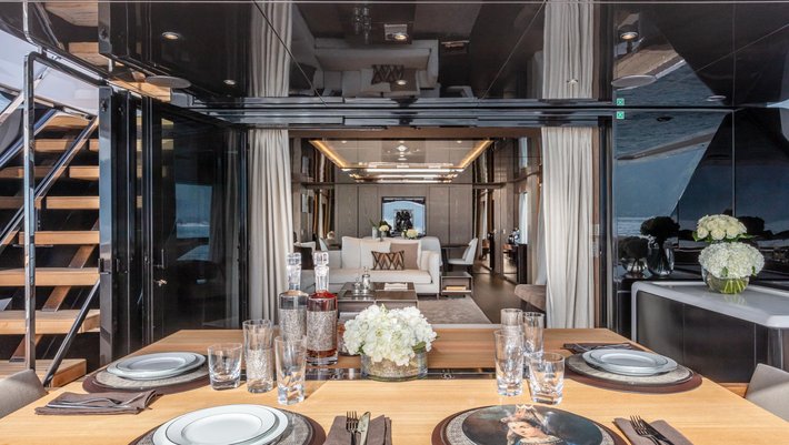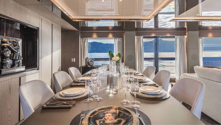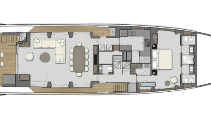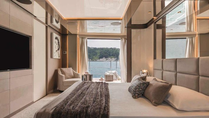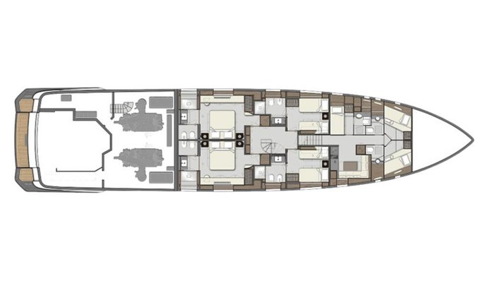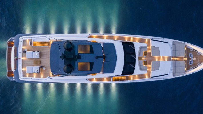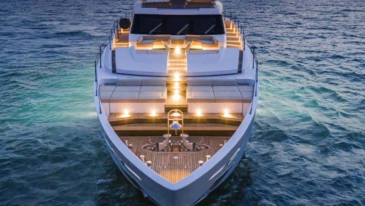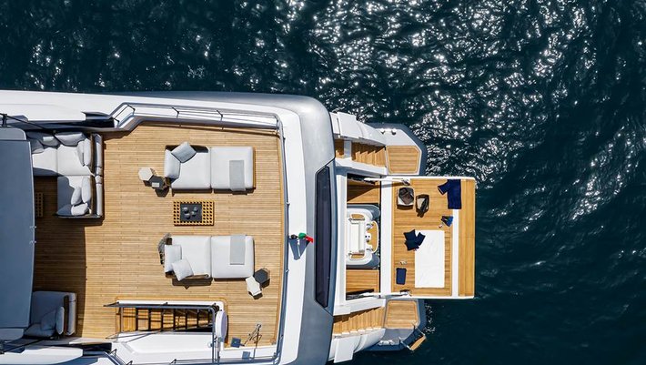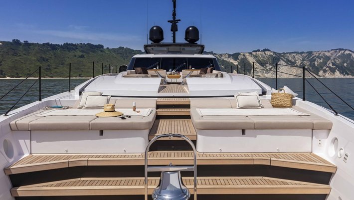 Impresionante yate diseñado en exclusiva para tener un alto comfort combinado con las últimas tecnologías. Hay 3 camarotes con cama doble, y 2 camarotes con 2 camas + posibilidad de 1 litera adicional para niños.Tiene 5 personas de tripulación: Capitán, Cocinero, Ingeniero, Marinera y Marinero. Tiene estabilizadores, gran plataforma de baño, tender Williams para deportes náuticos, JetSki, 2 SeaBob, E-foil, y 2 SUPs..