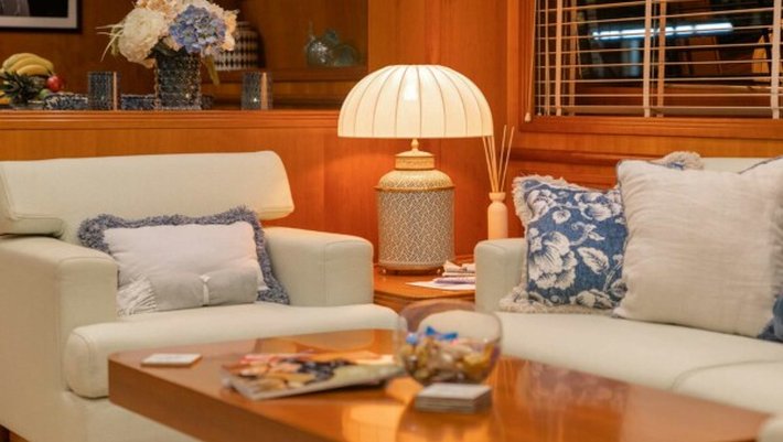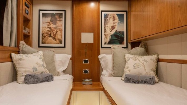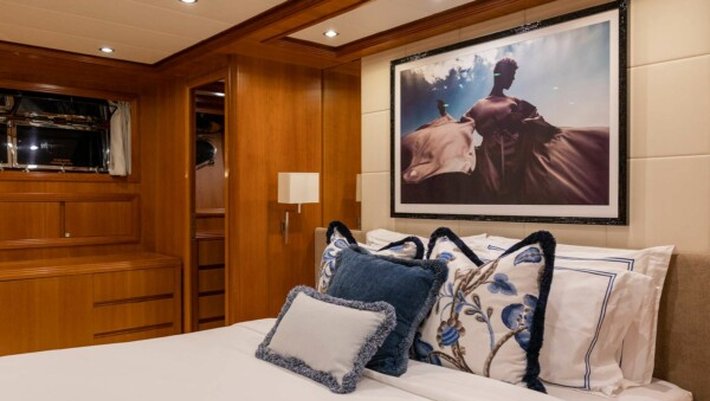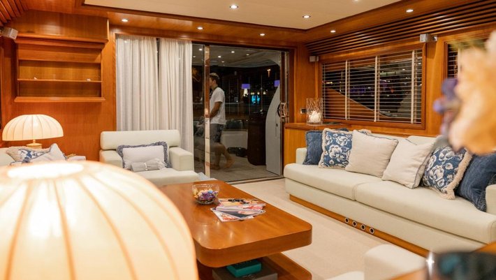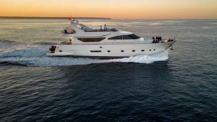 Magnífico yate completamente renovado y muy bien decorado. Tiene 3-4 personas de tripulación, y todas las comodidades a bordo. Cuenta con plataforma de baño, amplio flybridge, zona en proa para solarium, y zona en popa para comer comodamente 8 personas. Hay un auxliar para deportes náuticos y 2 SUPs.