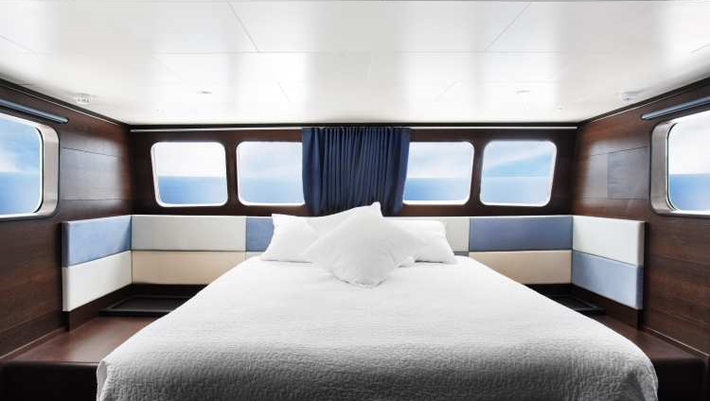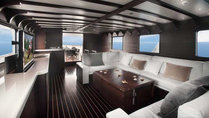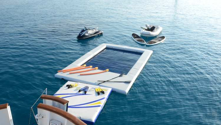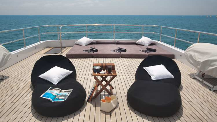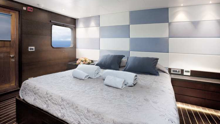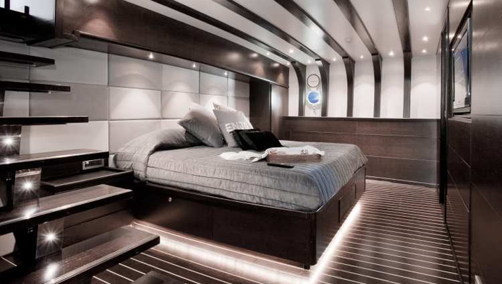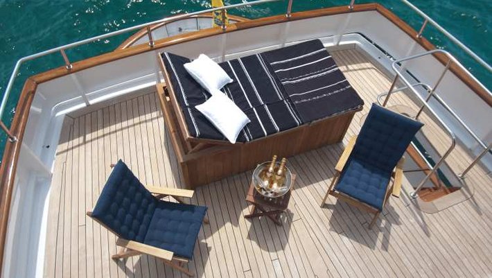 Con 4 de tripulación. Tiene auxiliar jet Avon 4,2 metros con 160 cv, Moto de agua Yamaha 160 cv, Wakeboard, Esquís acuáticos, 2 x paddle surf, Kayak, Snorkel, Piscina inflable anti medusas. EQUIPAMIENTO: TV satélite, DVD y home cinema con sistema surround en el salón, TV y DVD en cada camarote Conexión para iPod en salón y camarotes. Flybridge con solárium, nevera y wet bar. Escalera real de baño en estribor. Potabilizadora de agua. No incluye amarre en Ibiza.