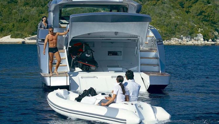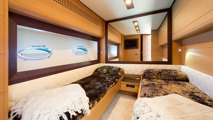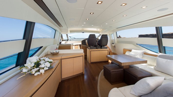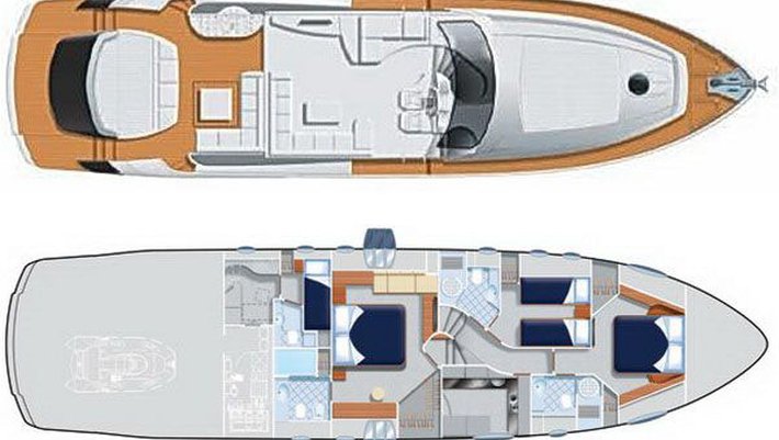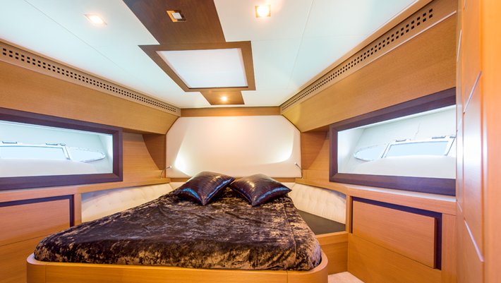 Moderno y esportivo yate con impecable diseño "open" está equipado con la tecnología náutica más avanzada. Con capacidad para alojar a 7 personas pernoctando y hasta 9 personas durante el día. Dispone de 3 camarotes, dos de ellos dobles y un tercero con dos camas individuales y una litera tipo pullman. Su potente motorización, 2 x 2.000 CV le permite alcanzar hasta 40 nudos de velocidad cómodamente.
